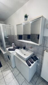 Die 3-Zimmer- Ferienwohnung in Lüdenscheid mit ca. 84 m² Wohnfläche befindet sich in zentraler Lage und ist nur 6 Minuten von der Autobahn A45 entfernt. Das 6-Parteienhaus überzeugt sowohl durch seine hervorragende Lage als auch durch die gute Verkehrsanbindung, die es den Gästen ermöglicht, alles schnell zu erreichen. Ein Supermarkt (Aldi & Rewe), zwei Bäcker, Imbisse, McDonald’s und Tankstellen sind bequem und unkompliziert zu Fuß erreichbar, sodass Sie alles Notwendige direkt in der Nähe finden. Zudem befindet sich ein für den Aufenthalt kostenlos zur Verfügung gestellter Parkplatz direkt auf dem Grundstück, was die Anreise mit dem Auto erheblich vereinfacht. Baumärkte (Obi, Hellweg), der Bahnhof, eine Apotheke, ein Friseur und das Krankenhaus sind ebenfalls schnell und problemlos mit dem Auto zu erreichen. Darüber hinaus gibt es in unmittelbarer Nähe eine Bushaltestelle, die eine praktische Alternative zur Nutzung des Autos darstellt, was zusätzliche Flexibilität bietet.